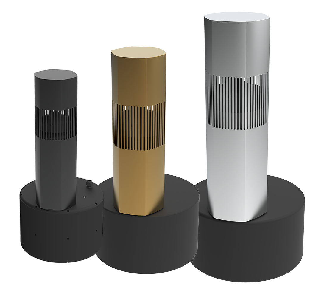 The Ambisonic Systems (ALSB106, ALSB85, and ALSB64) Bollard Burial Speakers feature a hexagonal design that enhances any outdoor space with style and performance. The durable, sustainable aluminum sleeves ensure long-term use in any environment.